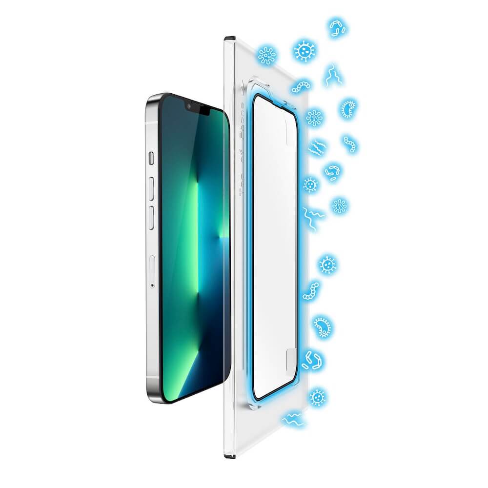 - Стъкленият протектор е с фабрично положен антибактериален слой със сребърни йони, който възпрепятства развитието на често срещани бактерии с до 99.9% успеваемост, а самият слой не се износва с времето