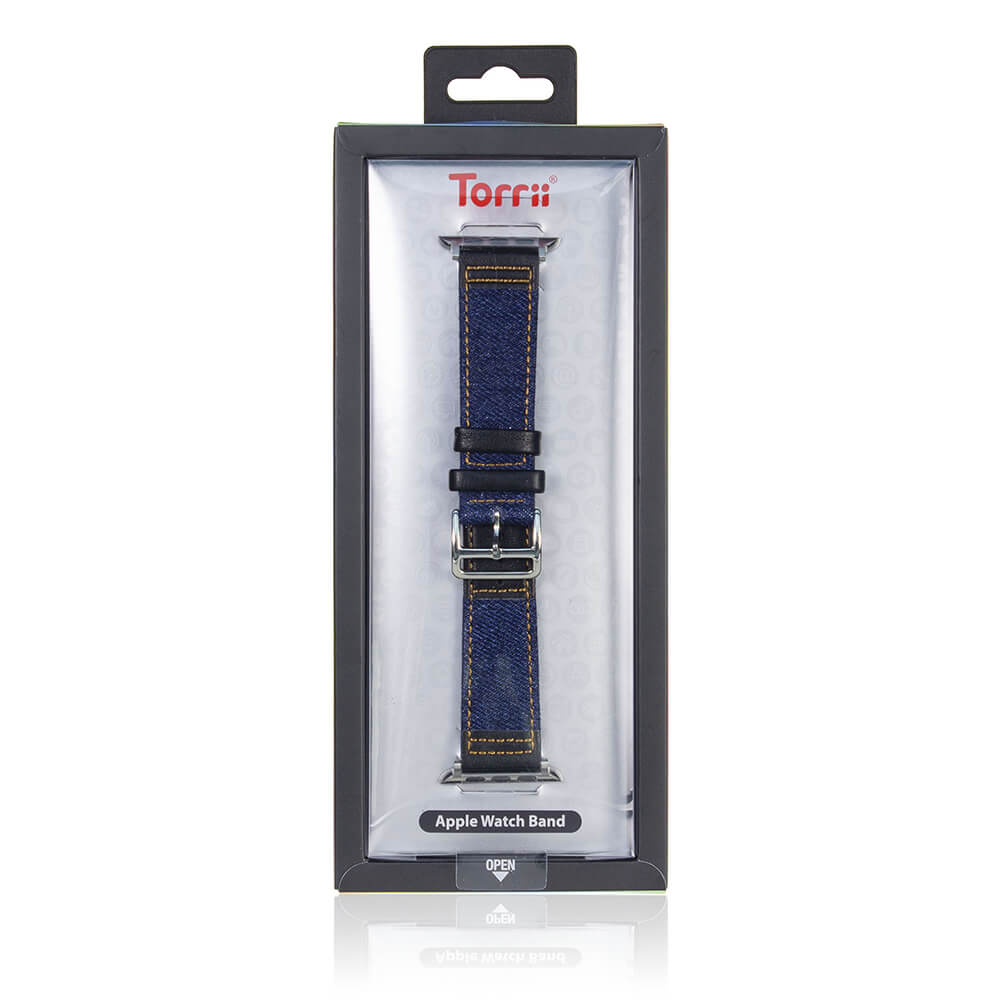 Torrii Leather Band - кожена каишка за Apple Watch 38мм, 40мм (тъмносиня дънкова материя с черна кожа)