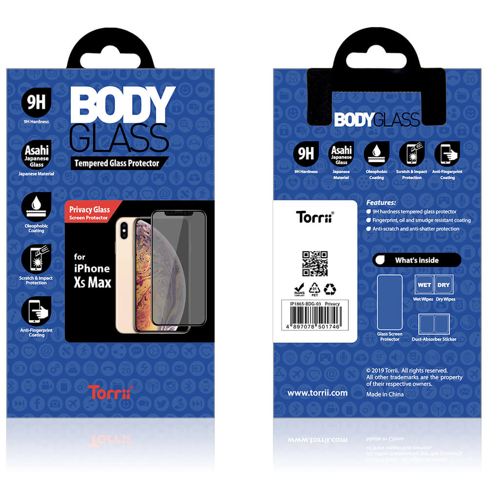 Torrii Privacy 3D Tempered Glass - калено стъклено защитно покритие с извити ръбове и определен ъгъл на виждане за целия дисплея на iPhone 11 Pro Max, iPhone XS Max (черен-прозрачен)