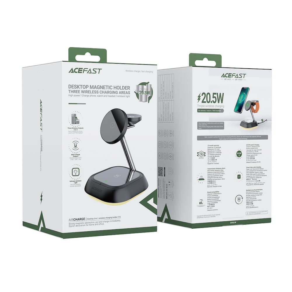 С Acefast 3in1 Inductive Wireless Charging Station можете лесно да зареждате вашите устройства, без да се притеснявате за кабели. Стойката е проектирана с внимание към детайлите и предлага елегантен и модерен дизайн, който ще се впише перфектно във всяко пространство.