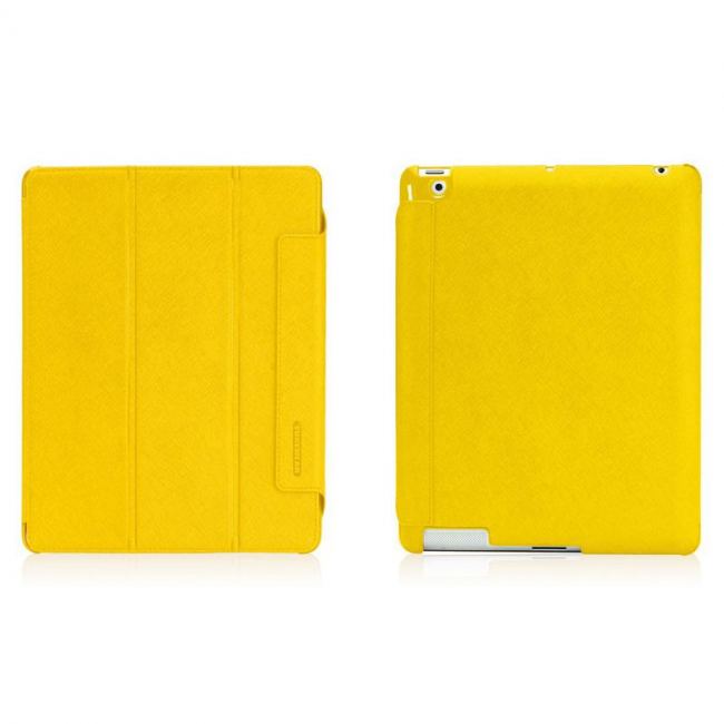 Tunewear LeatherLook - кожен кейс и поставка за iPad 2/3/4 (жълт)
