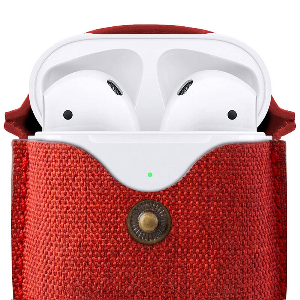 TwelveSouth AirSnap Leather Case - кожен калъф (ествествена кожа) за Apple AirPods и Apple AirPods 2 (червен)