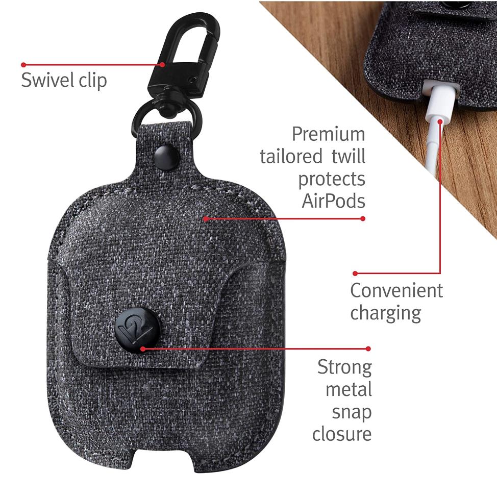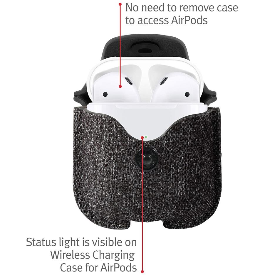TwelveSouth AirSnap Leather Case - кожен калъф (ествествена кожа) за Apple Airpods (тъмносив)