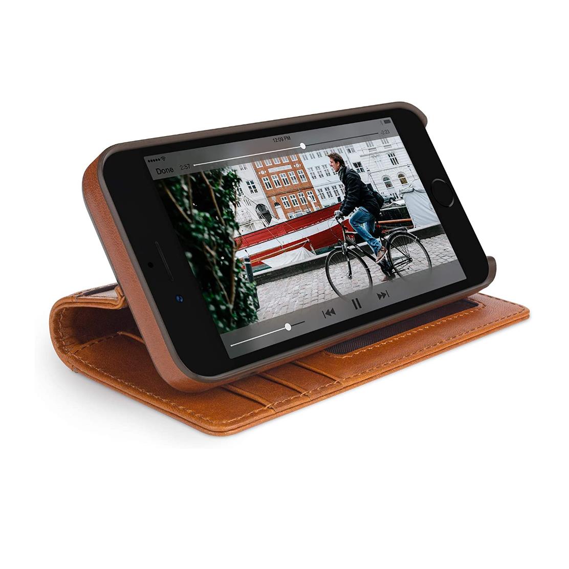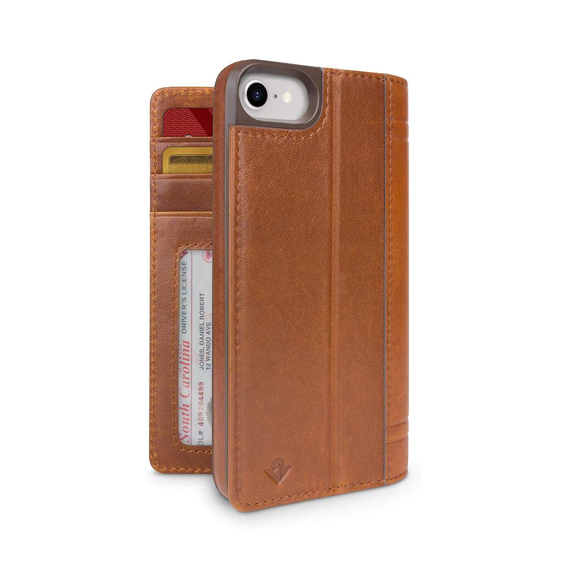 TwelveSouth Journal - луксозен кожен калъф тип портфейл за iPhone SE (2020), iPhone 8, iPhone 7 (кафяв)