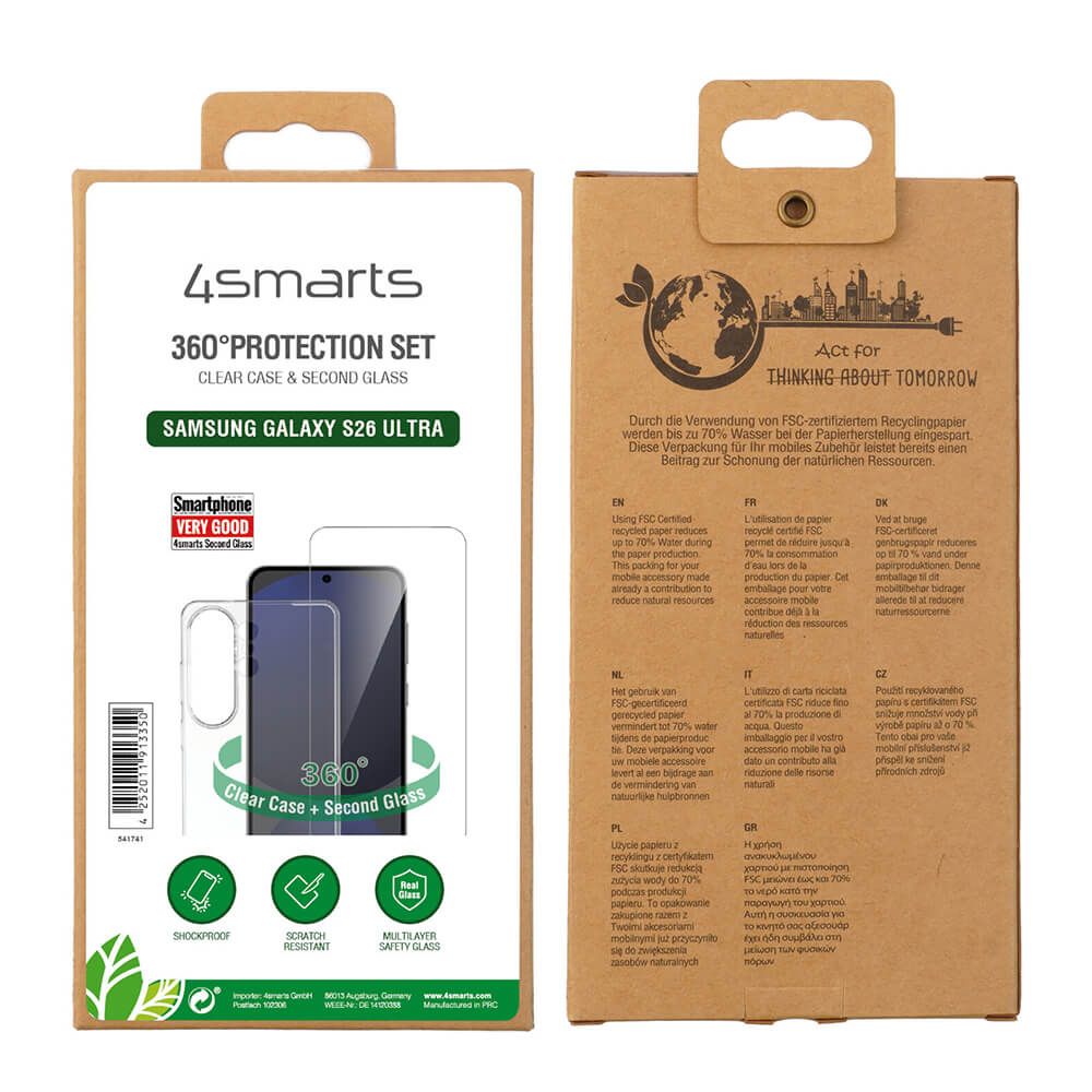 Представяме ви 360° Protection Set от 4smarts, който включва висококачествен стъклен скрийн протектор и тънък TPU кейс, осигуряващи надеждна защита за вашето мобилно устройство.