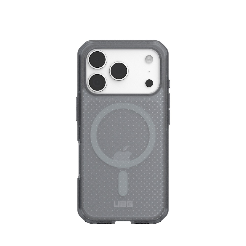 Удароустойчив хибриден кейс за iPhone 17 Pro - Urban Armor Gear Dot MagSafe Case (прозрачен-сив)