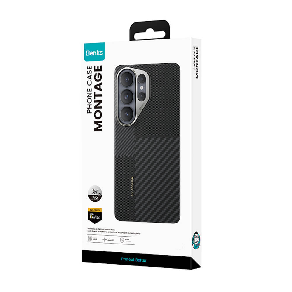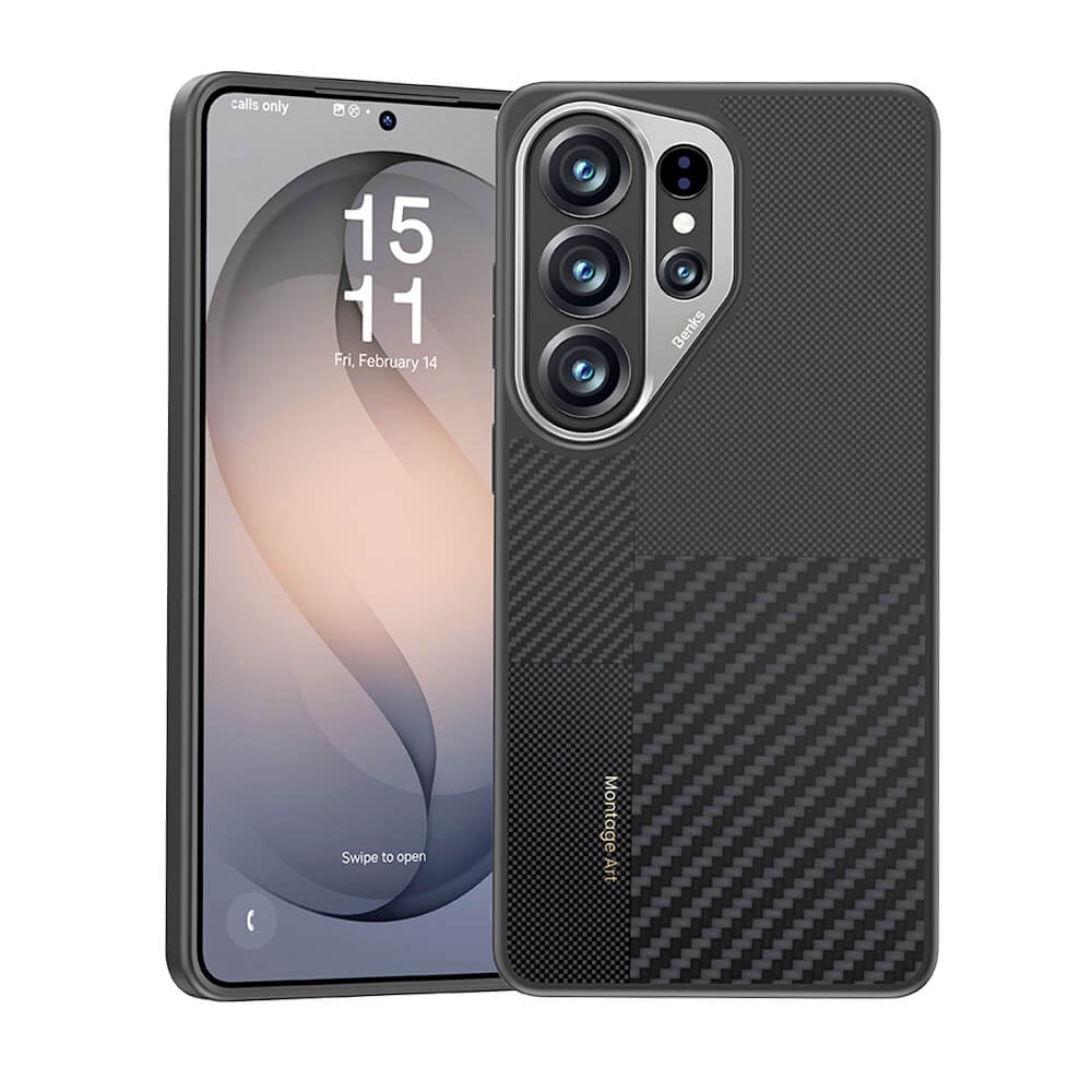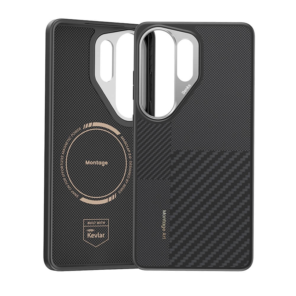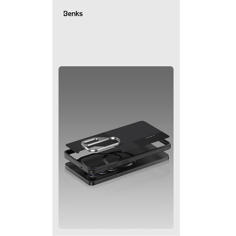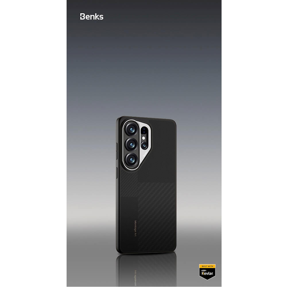 Удароустойчив кевларен кейс с MagSafe за Samsung Galaxy S26 Ultra - Benks Magnetic Armor Pro Montage Kevlar Metal Frame Camera Control Case 600D and 1500D (черен)