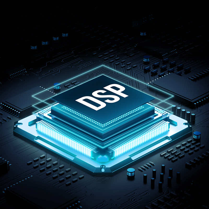 - Микрофонът е всенасочен (omni-directional) и притежава DSP процесор, който успява да улови звуковете в радиус от 360°