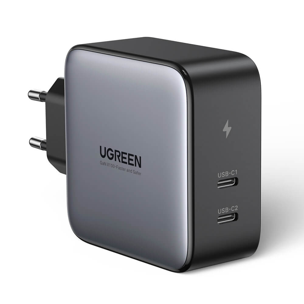 Ugreen GaN Fast Charger 100W USB-C PD Travel Wall Charger - захранване с 2 x USB-C изхода и с технология за бързо зареждане (тъмносив)