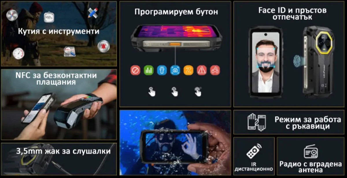 Ulefone Armor Mini 20 Pro е снабден с NFC модул, който поддържа безконтактни разплащания. Това е изключително удобство, особено за хора, които често пътуват. Защитата на устройството е осигурена чрез сензор за пръстов отпечатък и Face ID, което гарантира бързо и сигурно отключване.