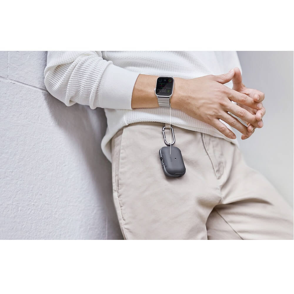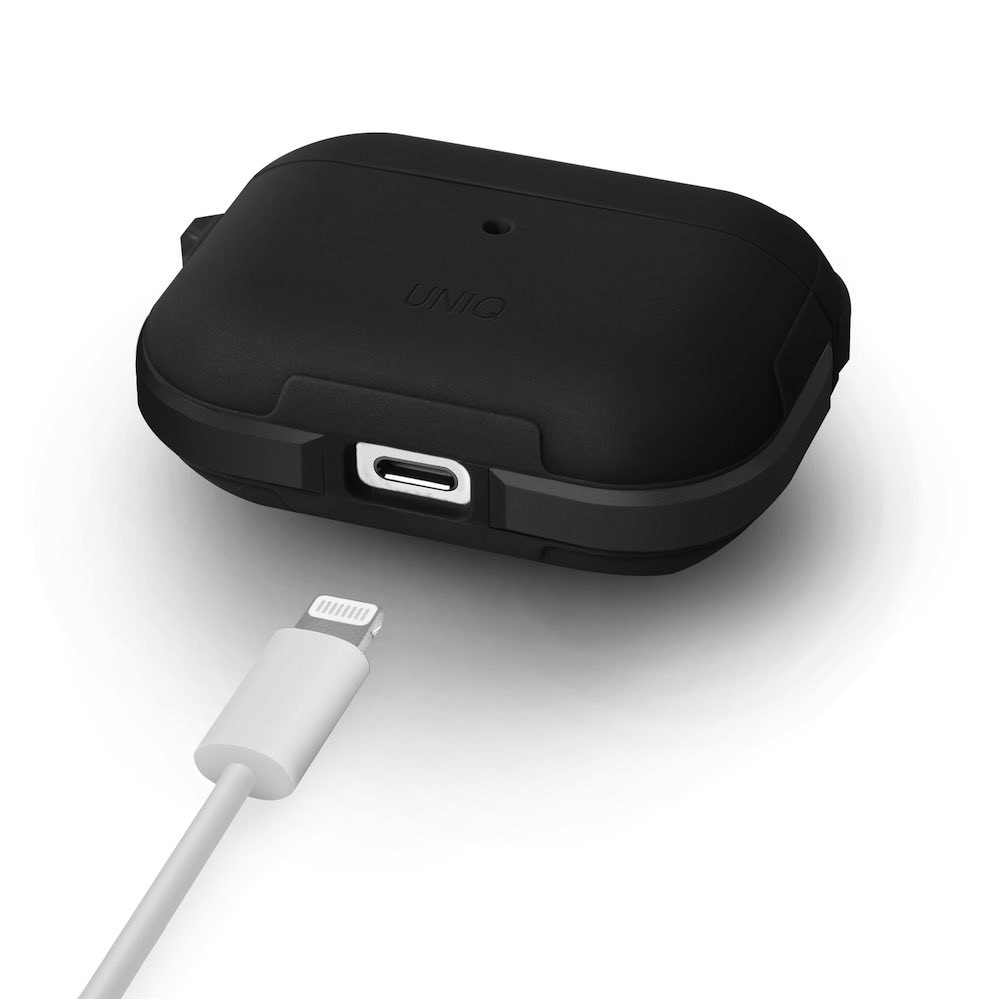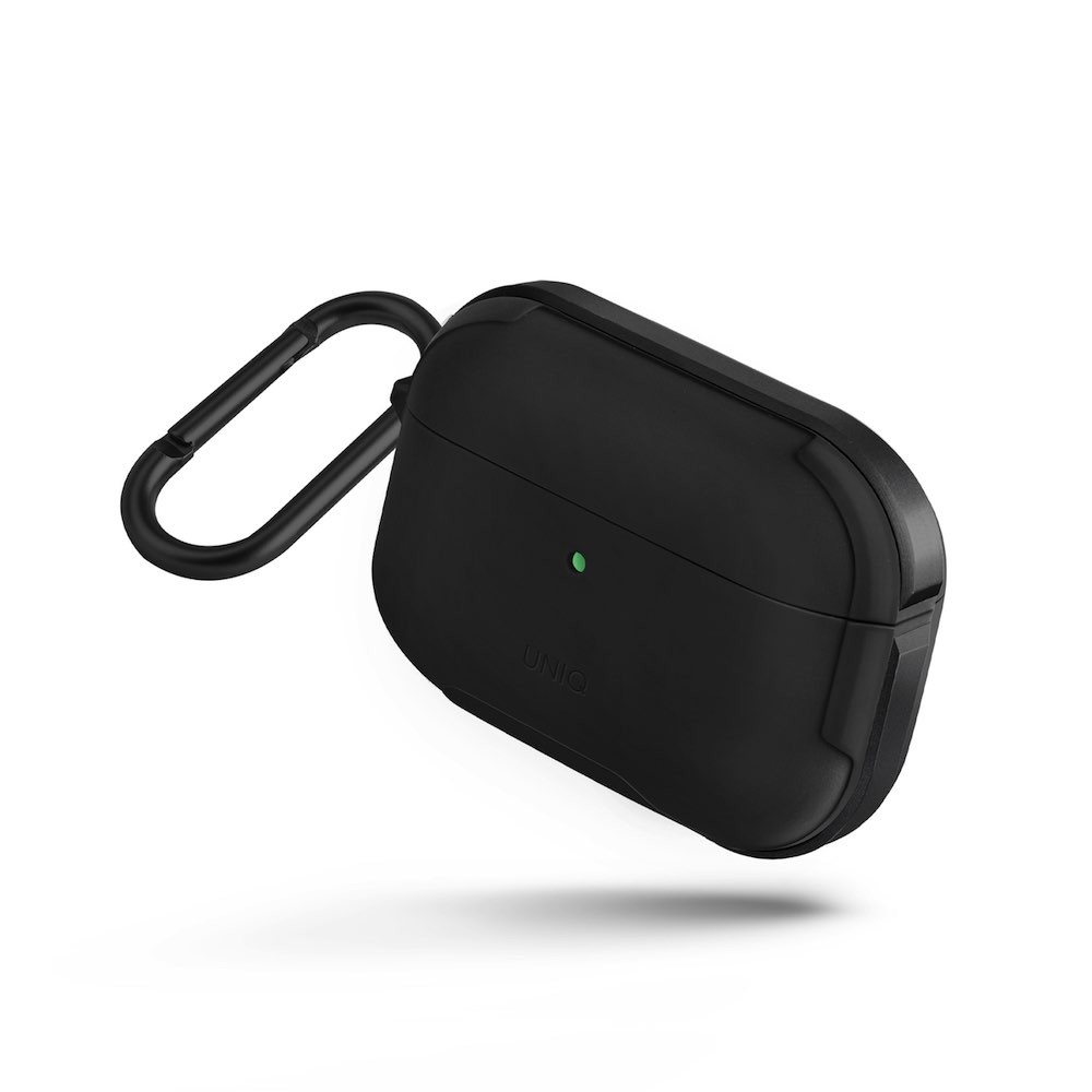 Uniq AirPods Pro Valencia Rugged Case - хибриден удароустойчив кейс с карабинер за Apple Airpods Pro (черен)