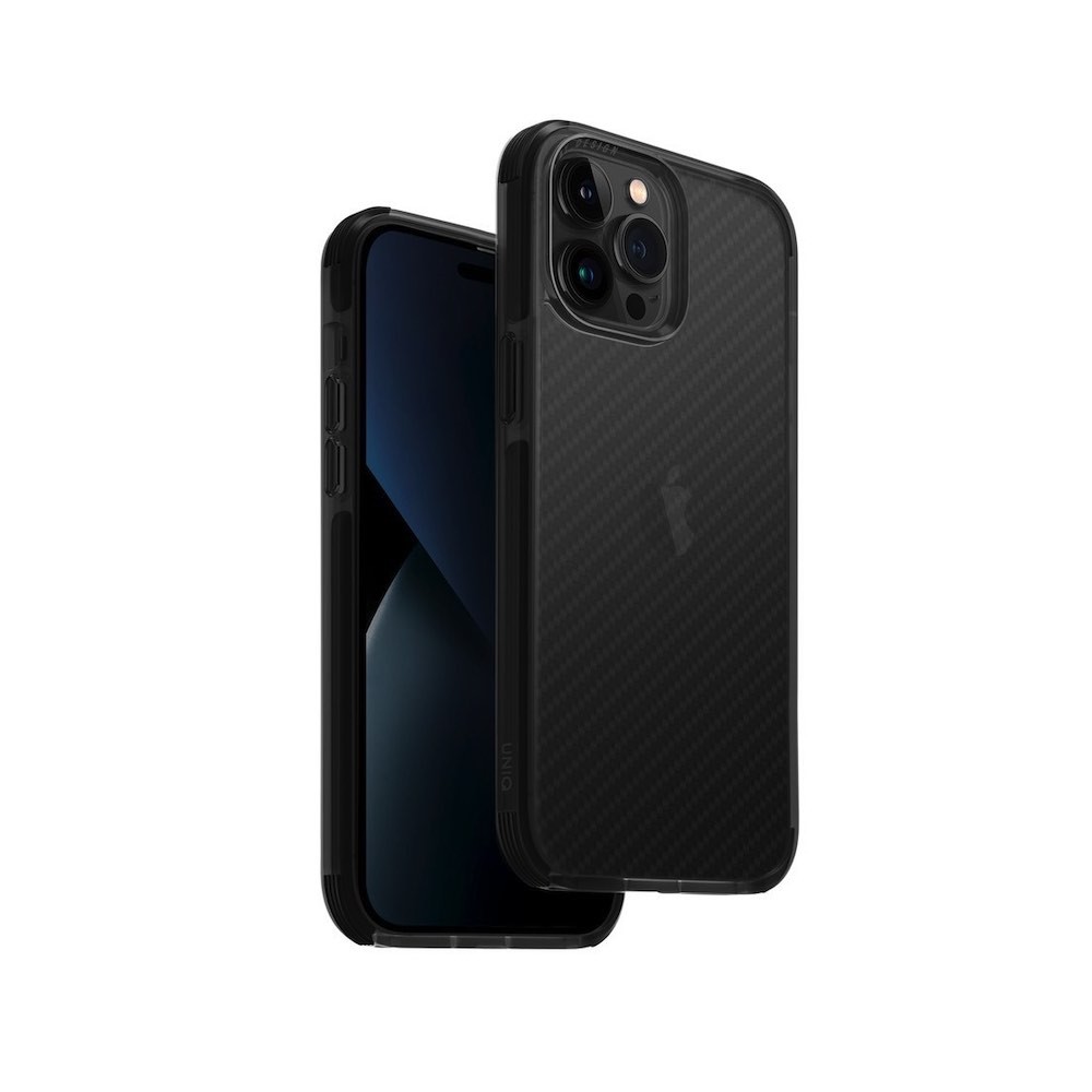 Uniq Combat Aramid Case - хибриден удароустойчив кейс с кевлар за iPhone 14 Pro (черен)