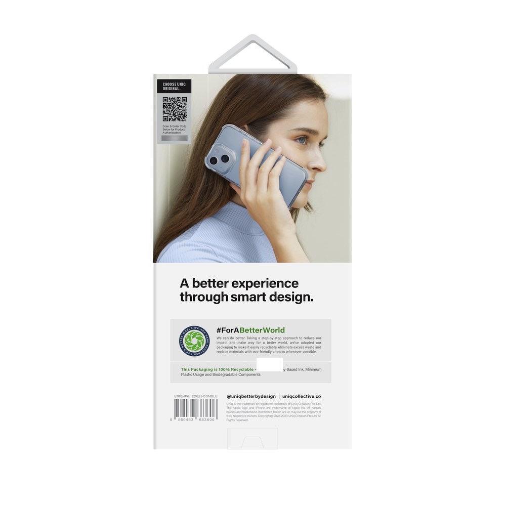 Uniq Combat Case - хибриден удароустойчив кейс за iPhone 14 (син-прозрачен)
