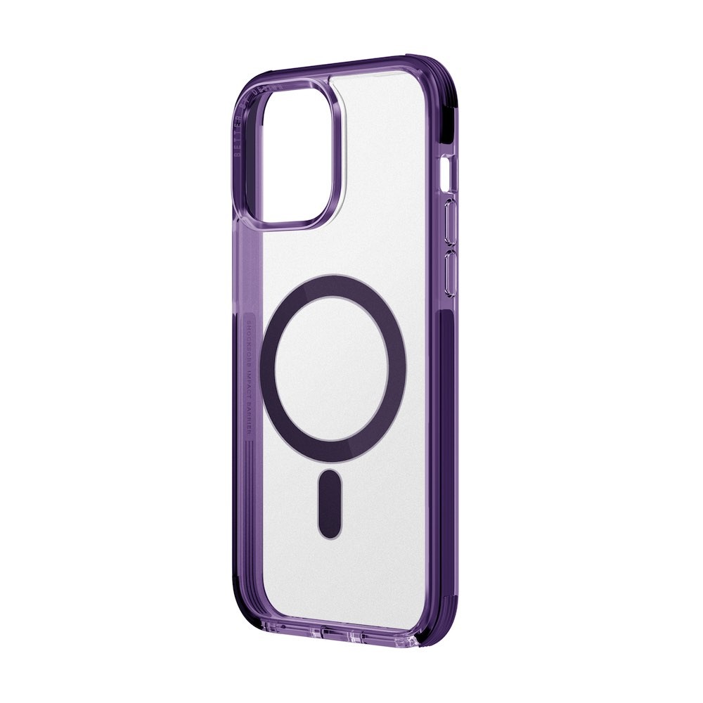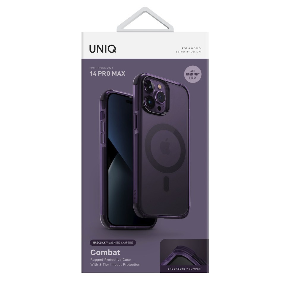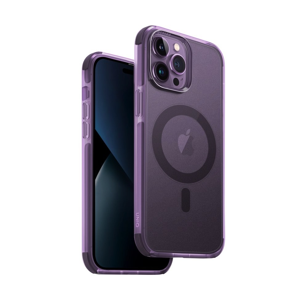 Uniq Combat MagClick Case - хибриден удароустойчив кейс за с MagSafe за iPhone 14 Pro Max (лилав-прозрачен)