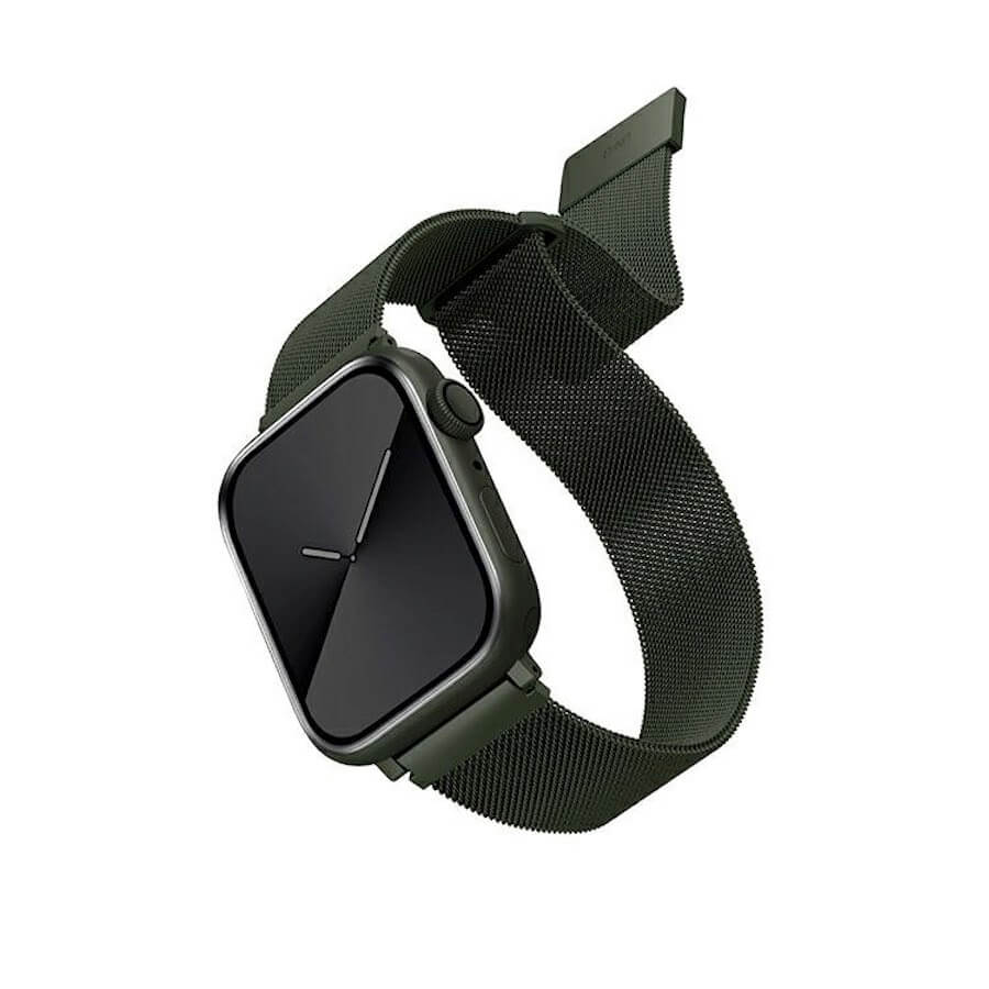 Uniq Dante Milanese Magnetic Stainless Steel Band - стоманена, неръждаема каишка за Apple Watch 42мм, 44мм, 45мм (зелен)