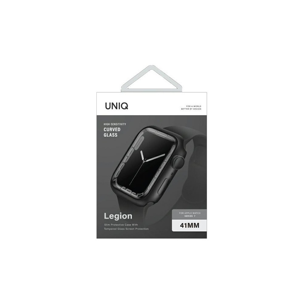Uniq Legion Apple Watch Case 41mm - качествен твърд кейс с вграден стъклен протектор за дисплея на Apple Watch 7 41мм (черен)