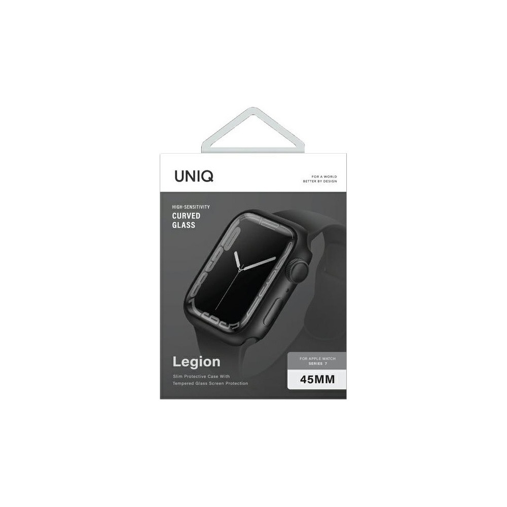 Uniq Legion Apple Watch Case 45mm - качествен твърд кейс с вграден стъклен протектор за дисплея на Apple Watch 7 45мм (черен)