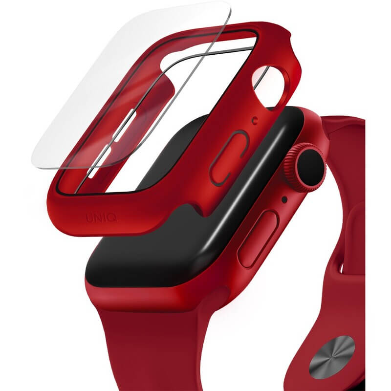 Uniq Nautic Apple Watch Case 40mm - качествен твърд кейс с вграден стъклен протектор за дисплея на Apple Watch 40мм (червен)