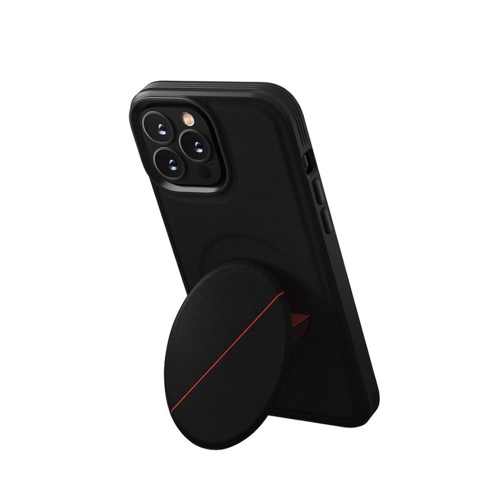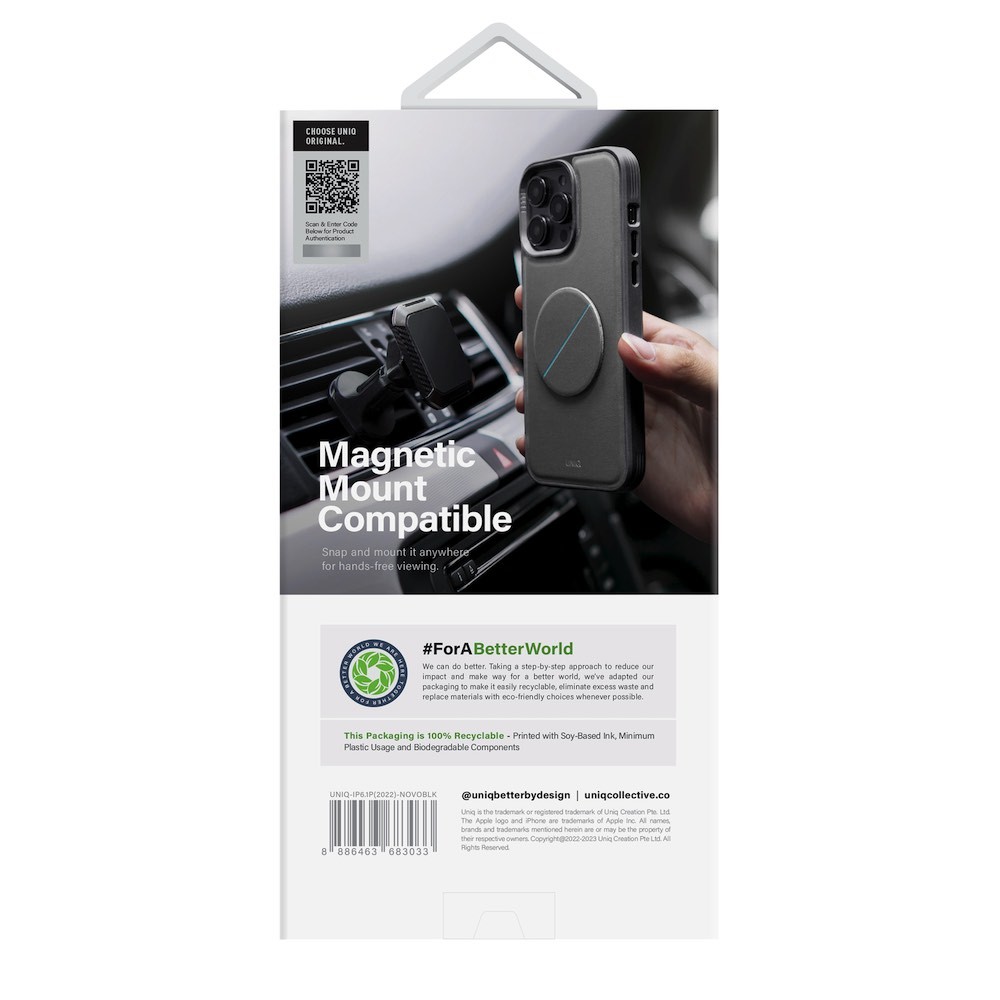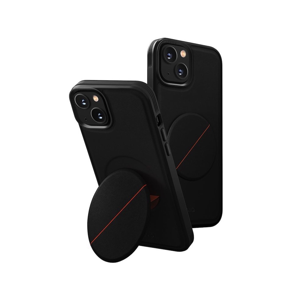Uniq Novo Case With Foldable Stand - хибриден удароустойчив кожен кейс с поставка против изпускане за iPhone 14 Pro (черен)