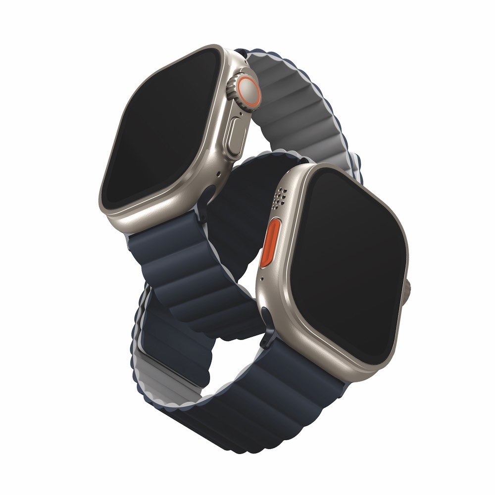 Uniq Revix Silicone Magnetic Strap - двулицевва магнитна силиконова каишка за Apple Watch 42мм, 44мм, 45мм, 46мм, Ultra 49мм (тъмносин-сив)