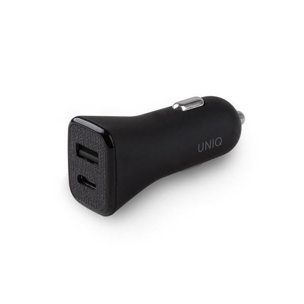 Uniq Votra Duo P30 USB & USB-C QC 3.0 Car Charger 30W - зарядно за кола с USB и USB-C изходи и технология за бързо зареждане (черен)