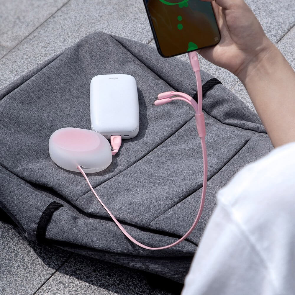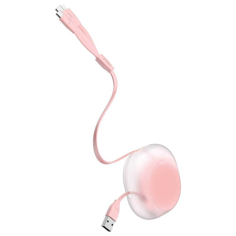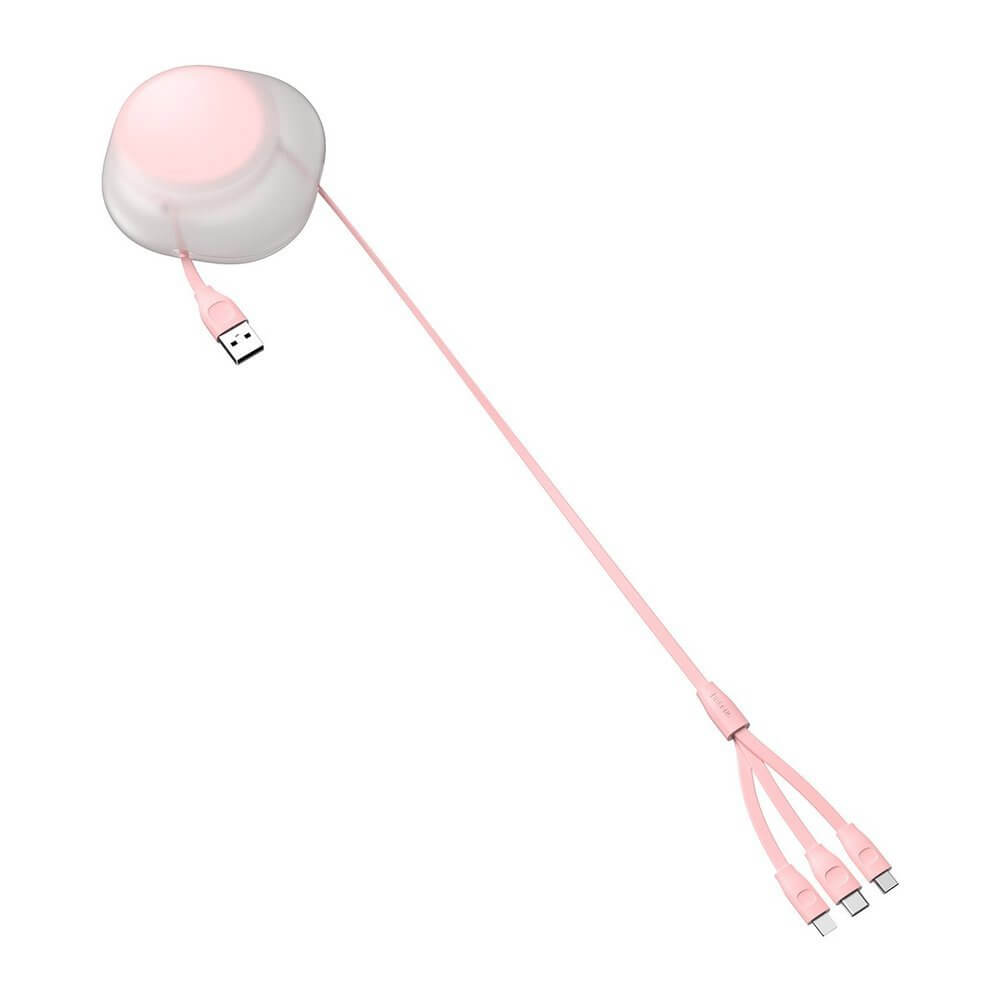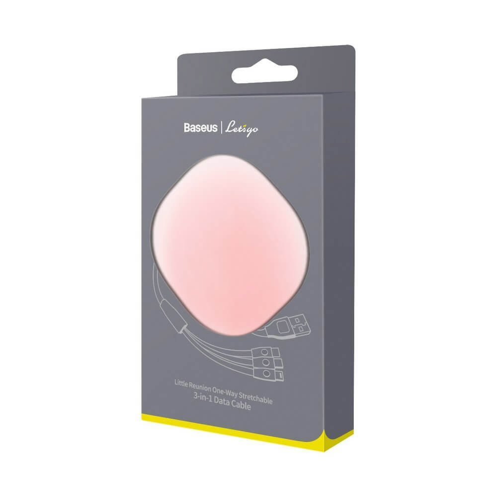 Универсален USB кабел с Lightning, microUSB и USB-C конектори (80 см) - Baseus Lets Go Little Reunion One-Way Stretchable 3-in-1 USB Cable (розов)