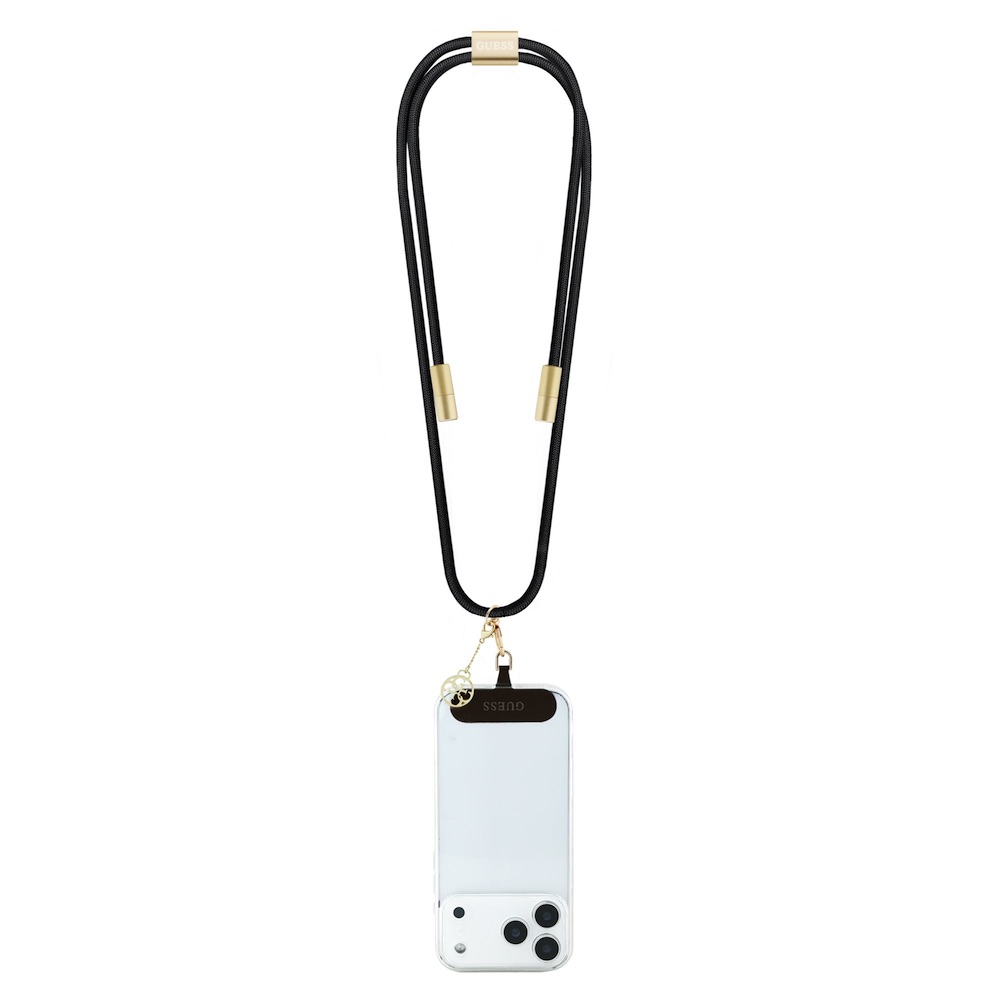Универсална връзка за носене през врата за смартфони, с вграден USB-C към USB-C кабел - Guess 4G Charm Crossbody Strap With USB-C Cable (черен) (150 см)