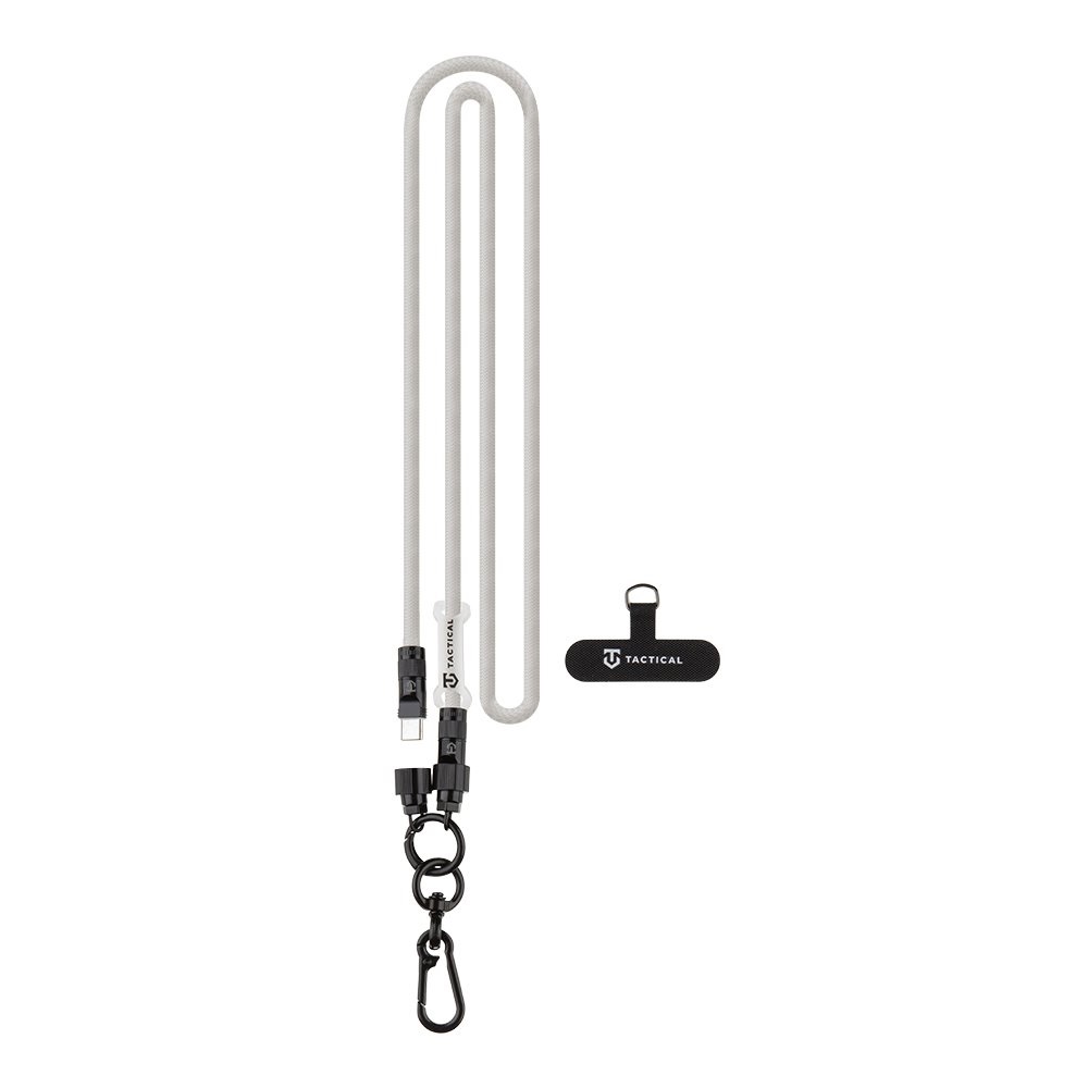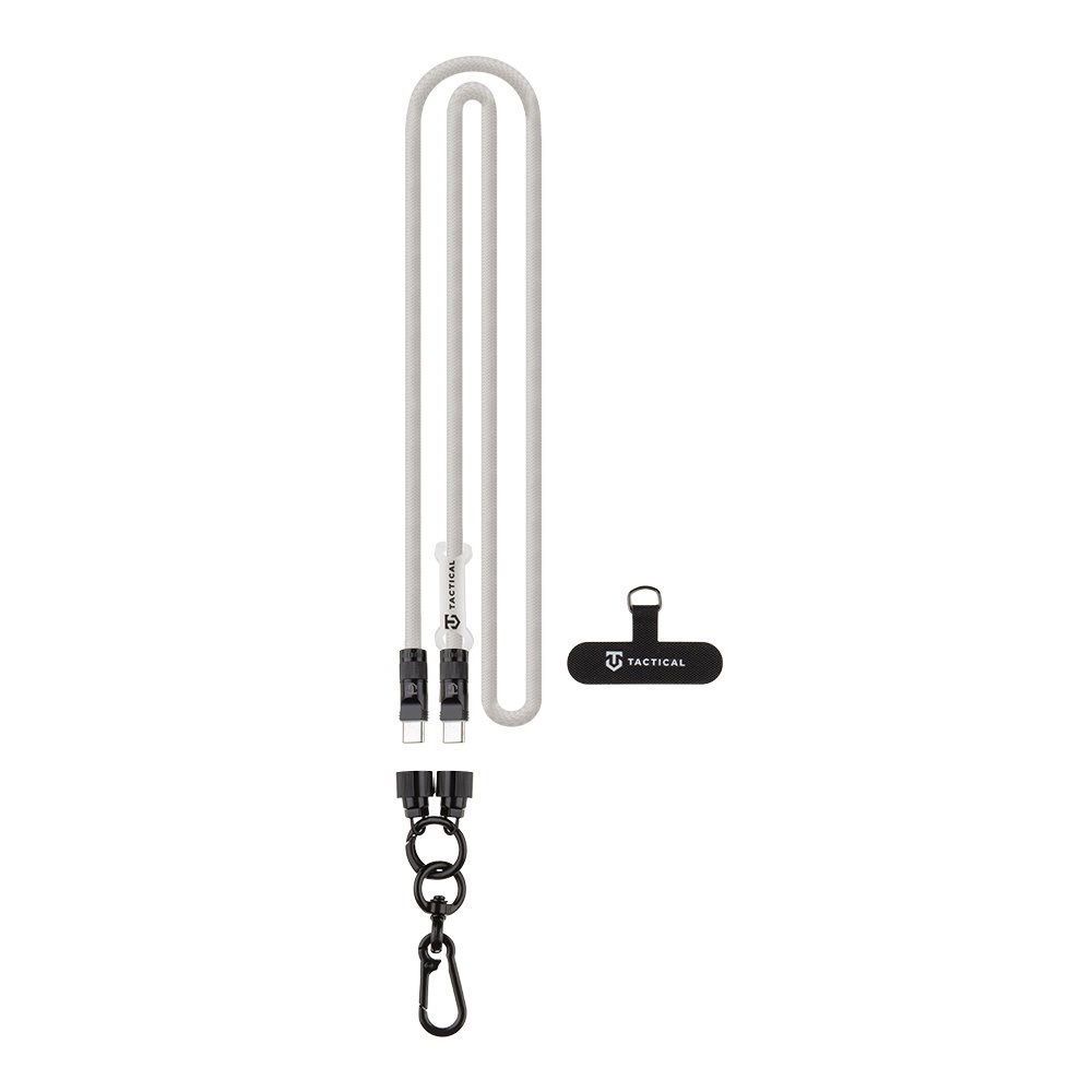 Универсална връзка за носене през врата за смартфони с вграден USB-C към USB-C кабел - Tactical Wire Snake USB-C Universal Phone Lanyard Cable 60W (бял)