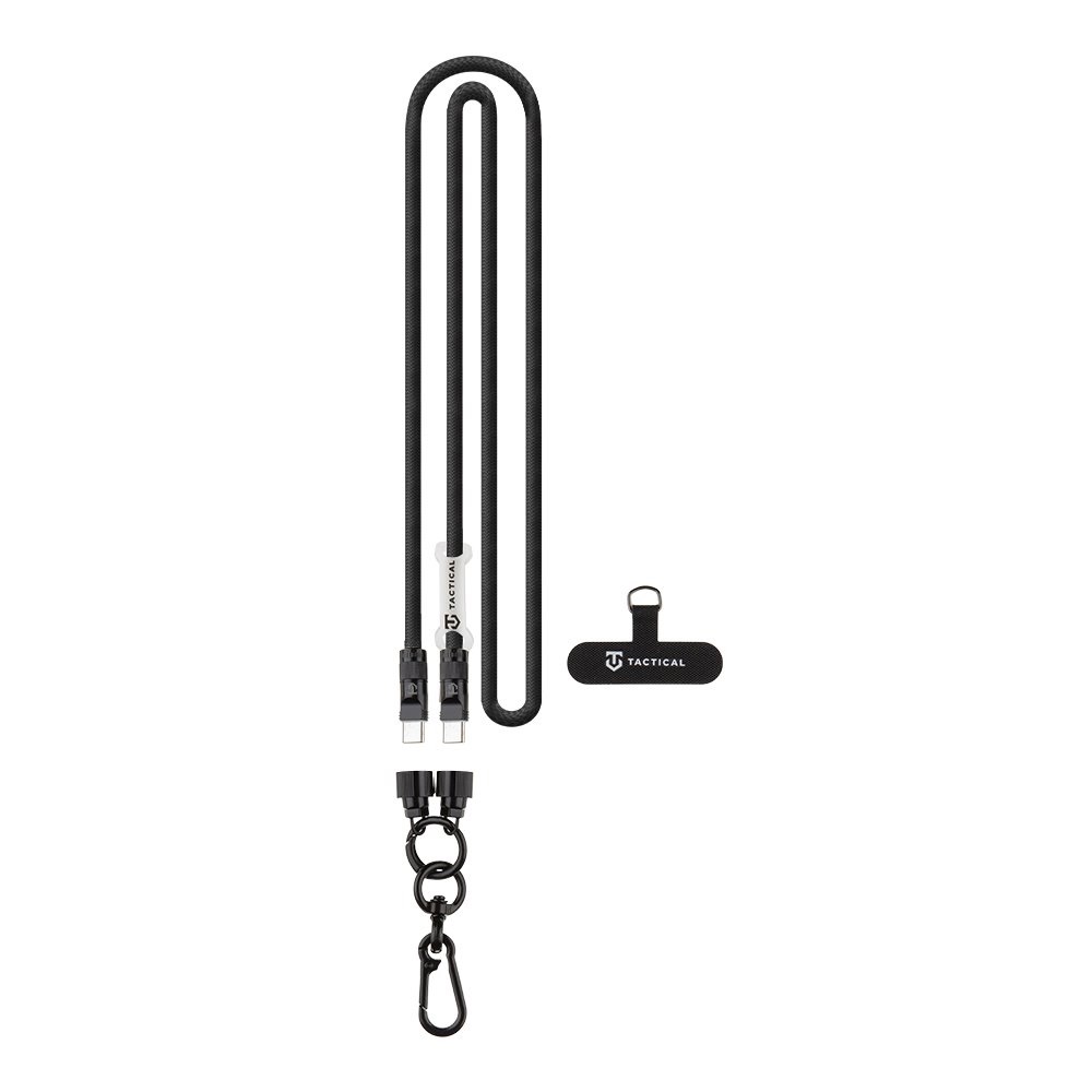 Универсална връзка за носене през врата за смартфони с вграден USB-C към USB-C кабел - Tactical Wire Snake USB-C Universal Phone Lanyard Cable 60W (черен)