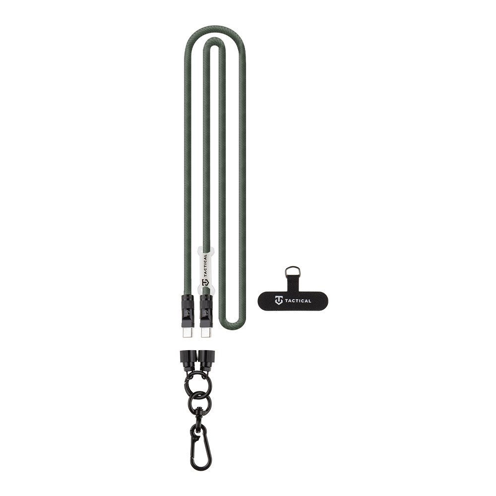 Универсална връзка за носене през врата за смартфони с вграден USB-C към USB-C кабел - Tactical Wire Snake USB-C Universal Phone Lanyard Cable 60W (зелен)