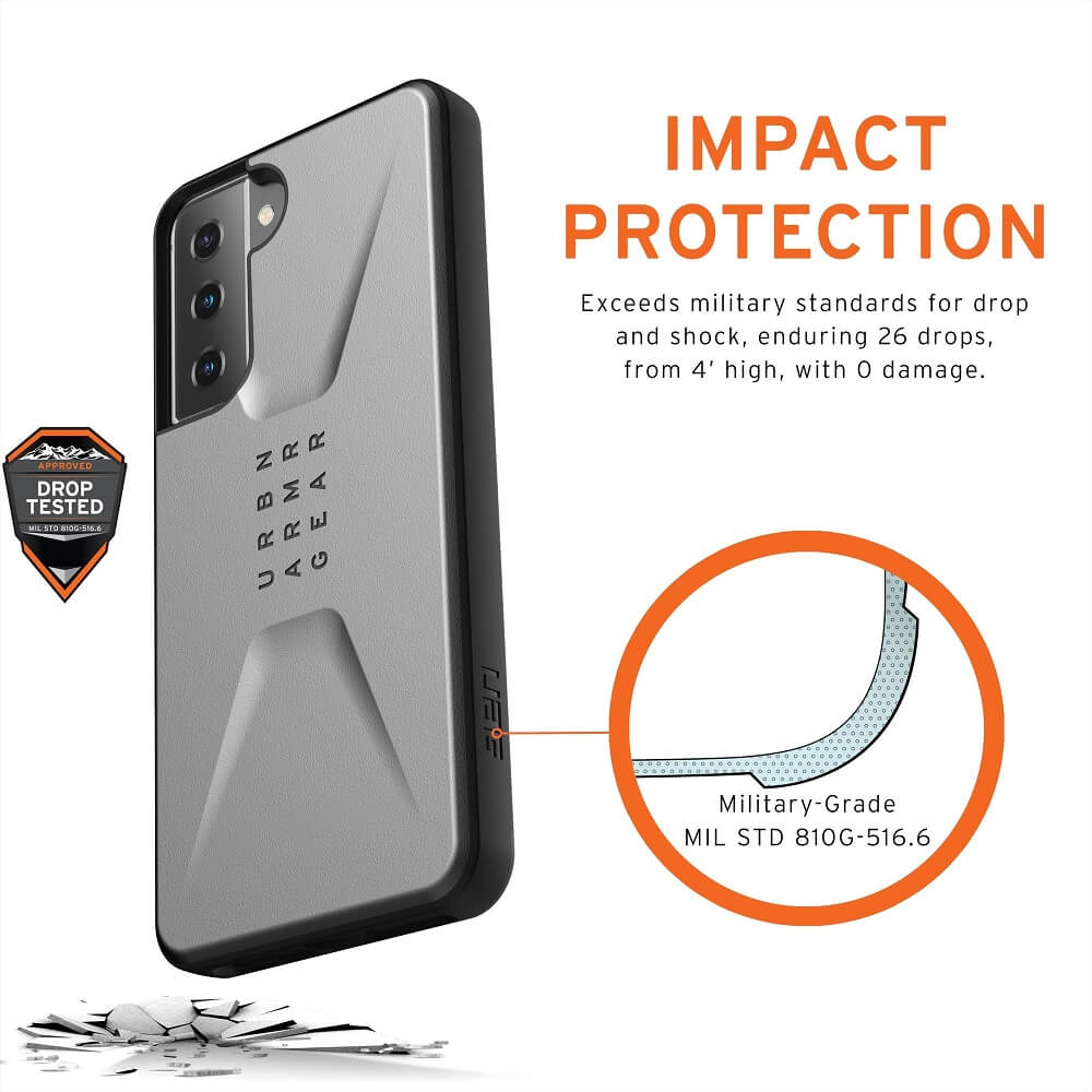 Urban Armor Gear Civilian Case - удароустойчив хибриден кейс за Samsung Galaxy S21 Plus (сребрист)