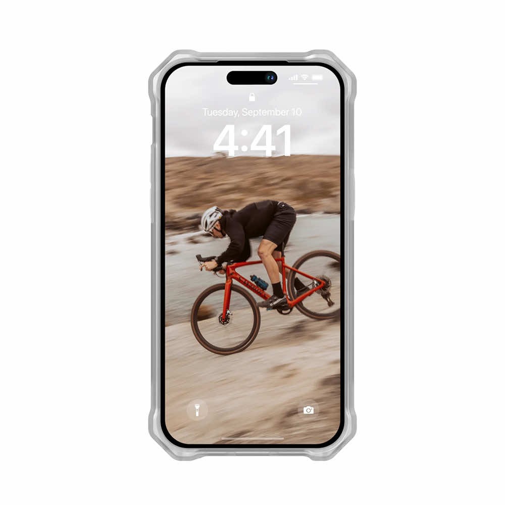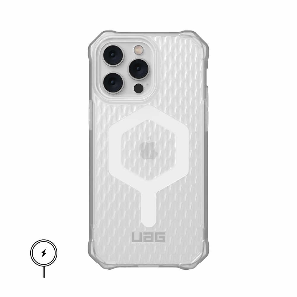 Urban Armor Gear Essential Armor MagSafe Case - удароустойчив силиконов калъф с MagSafe за iPhone 14 Pro Max (бял)