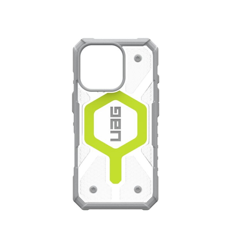 Urban Armor Gear Pathfinder Clear MagSafe Case - удароустойчив хибриден кейс с MagSafe за iPhone 16 Pro Max (сив-зелен)