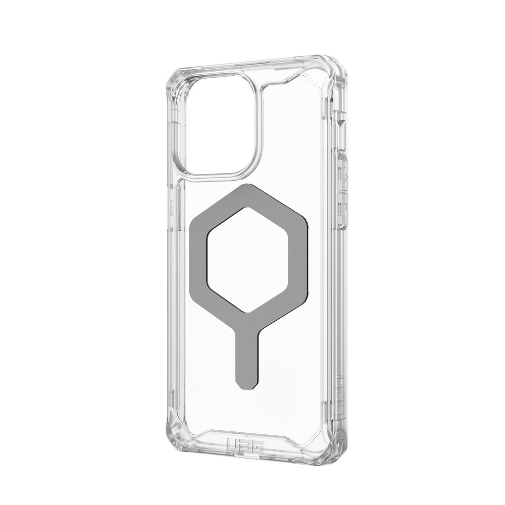 Urban Armor Gear Plyo MagSafe Case - удароустойчив хибриден кейс за iPhone 15 Pro Max (прозрачен-сребрист)