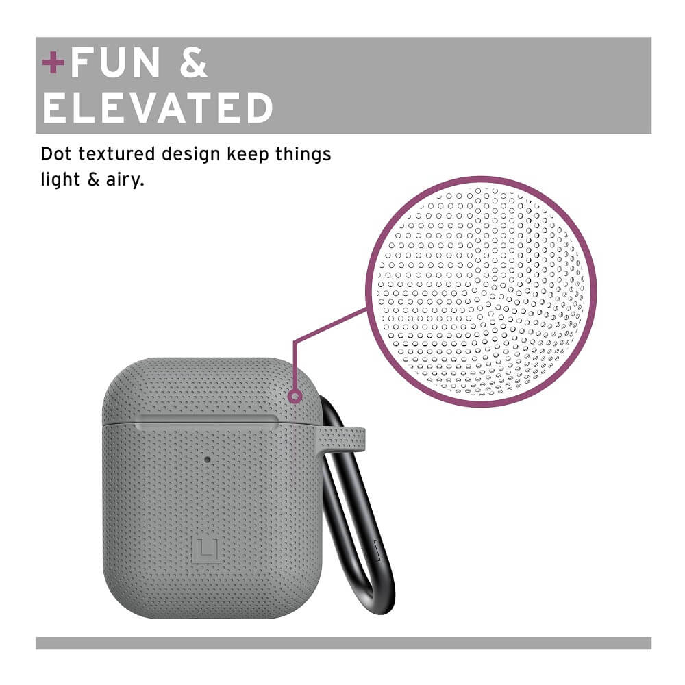 Urban Armor Gear Soft Touch U Silicone Case - удароустойчив силиконов калъф с карабинер за Apple Airpods и Apple Airpods 2 (сив)