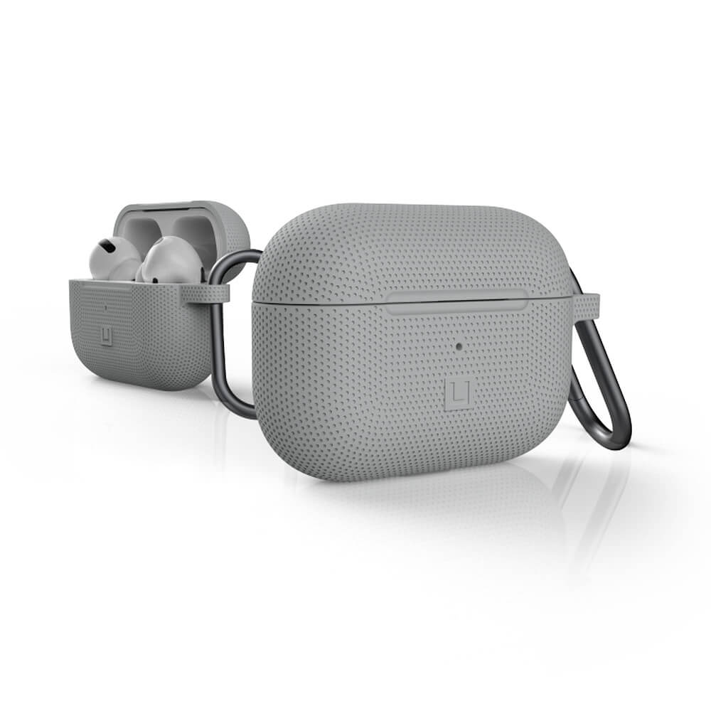 Urban Armor Gear Soft Touch U Silicone Case - удароустойчив силиконов калъф с карабинер за Apple Airpods Pro (сив)