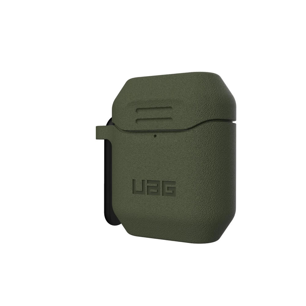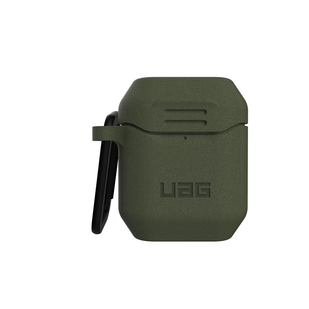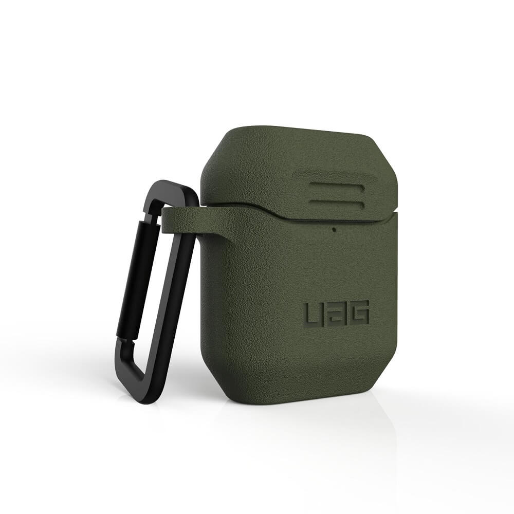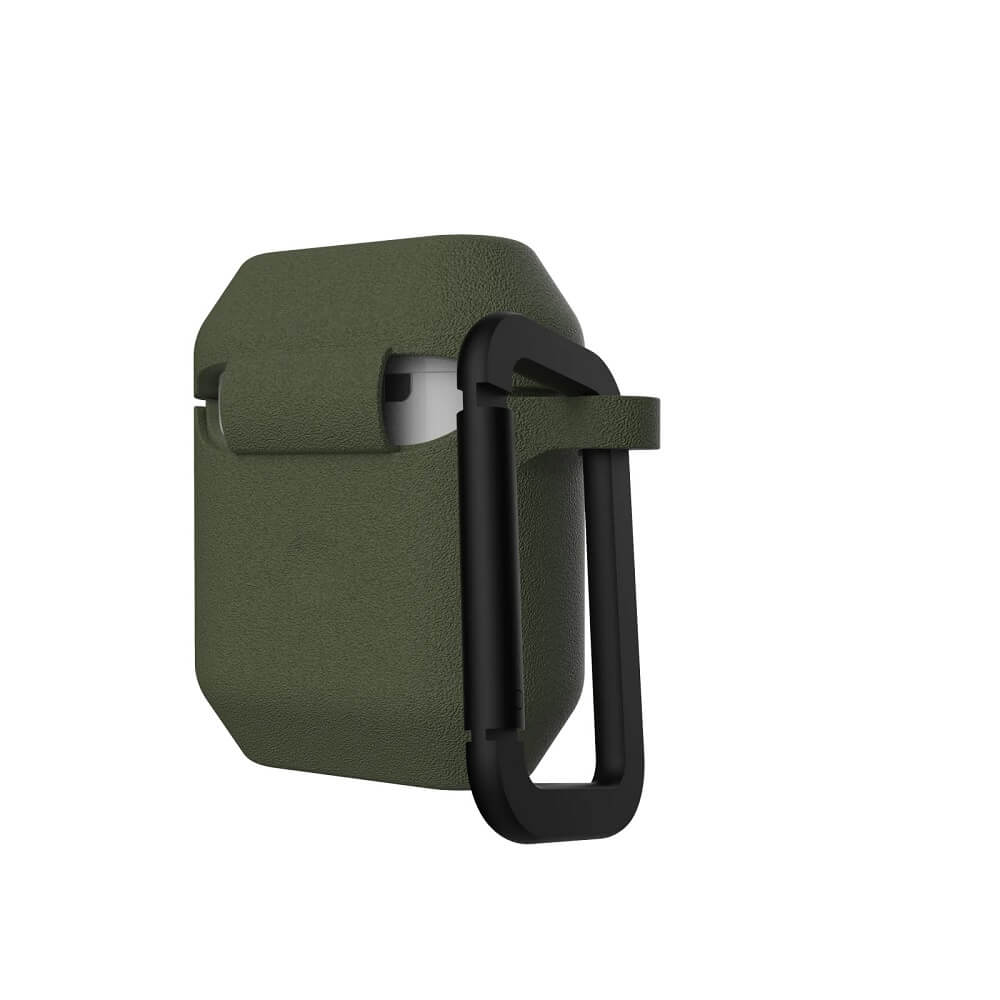 Urban Armor Gear Standard Issue Silicone Case 001 - удароустойчив силиконов калъф с карабинер за Apple Airpods и Apple Airpods 2 (тъмнозелен)