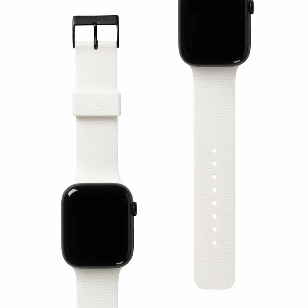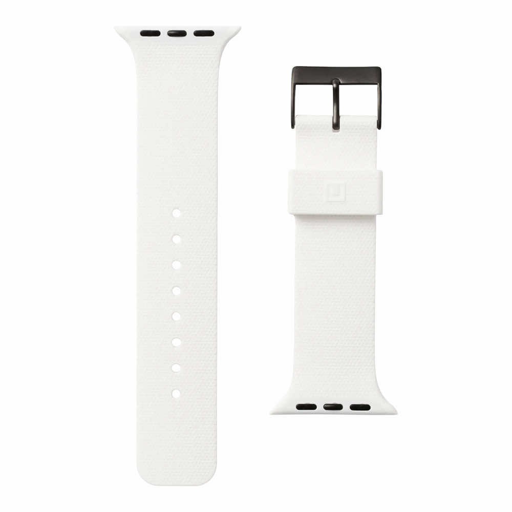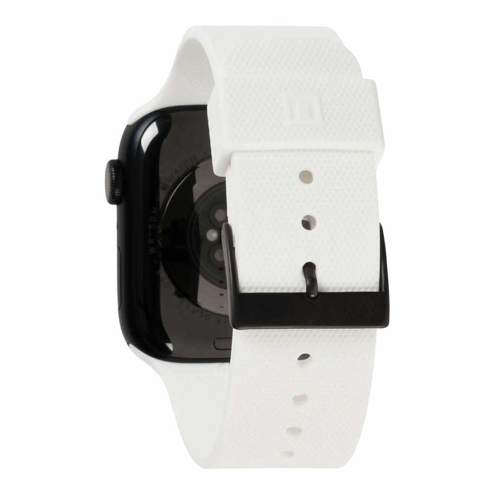 Urban Armor Gear U Dot Silicone Strap - изключително здрава силиконова каишка за Apple Watch 42мм, 44мм, 45мм, 46мм, Ultra 49мм (бял)