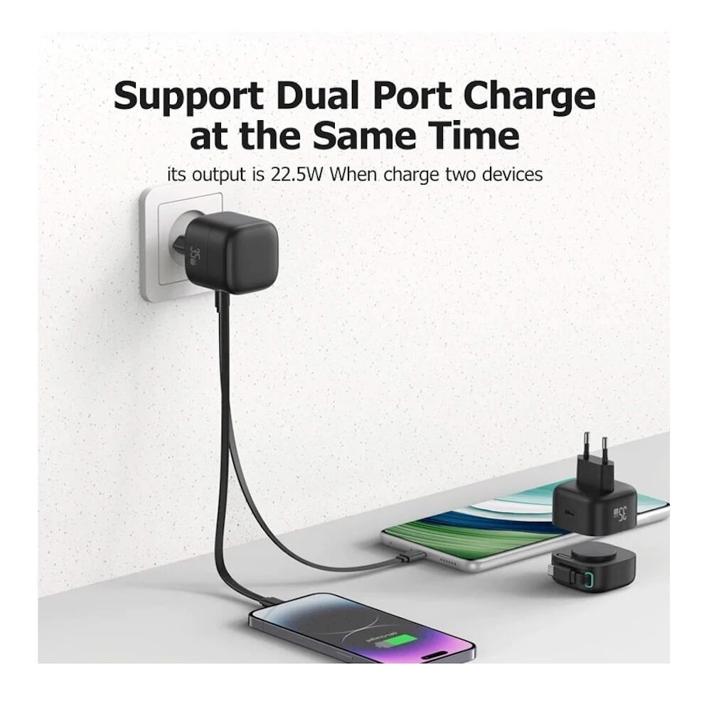 - Модел: GaN Wall Charger With Magnetic Retractable USB-C Cable 35W