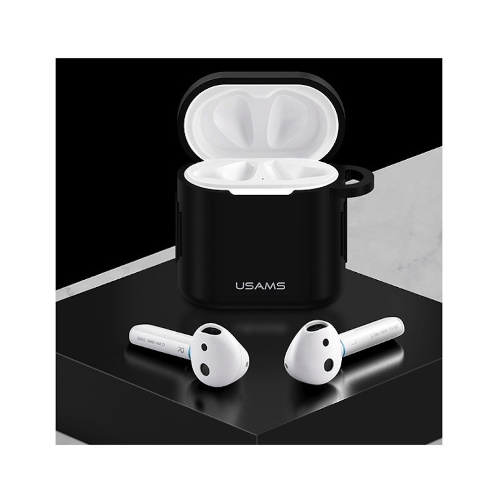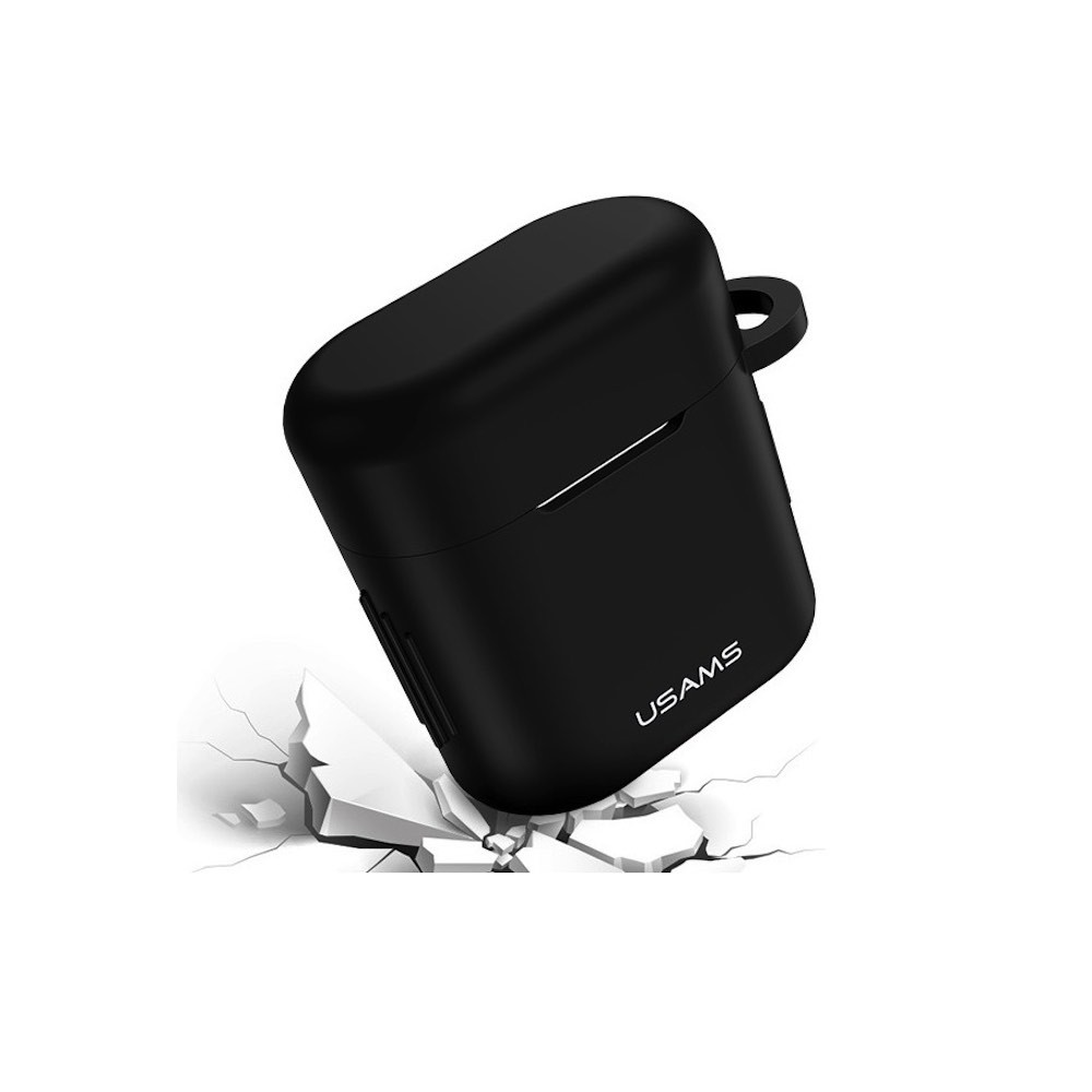 USAMS Silicone Case - силиконов калъф с карабинер за Huawei Freebuds 2, Freebuds 2 Pro (черен)