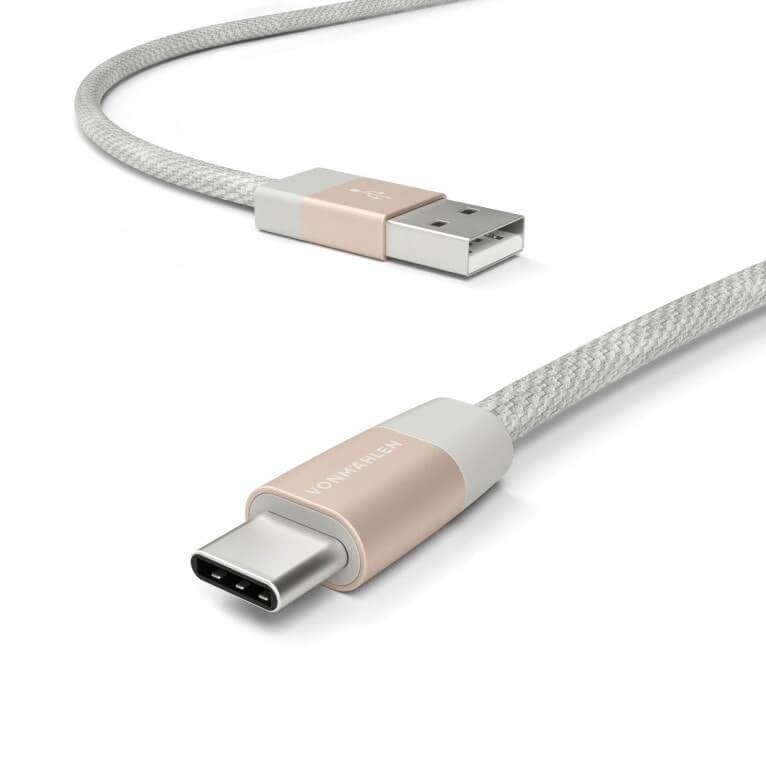 USB-A към USB-C 2.0 плетен кабел за устройства с USB-C порт (100 см) - Vonmahlen Premium Cable USB-A to USB-C (розово злато)