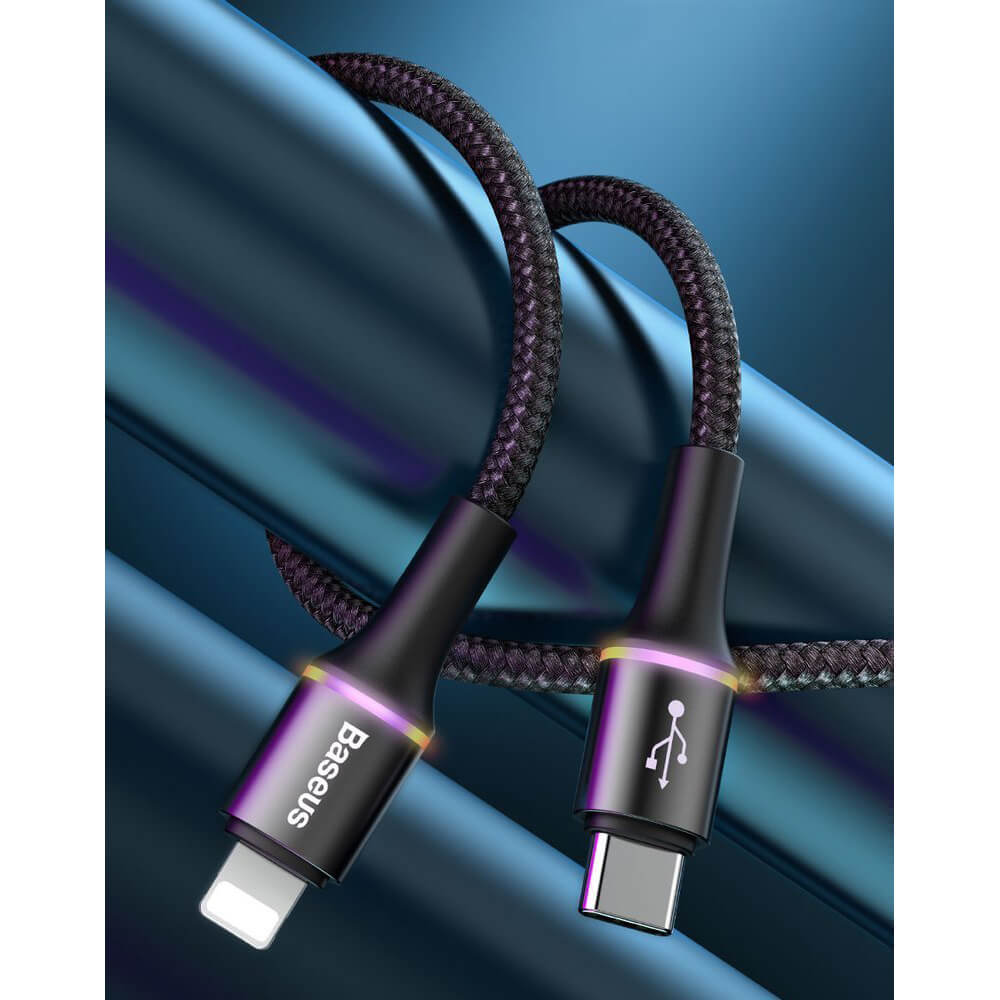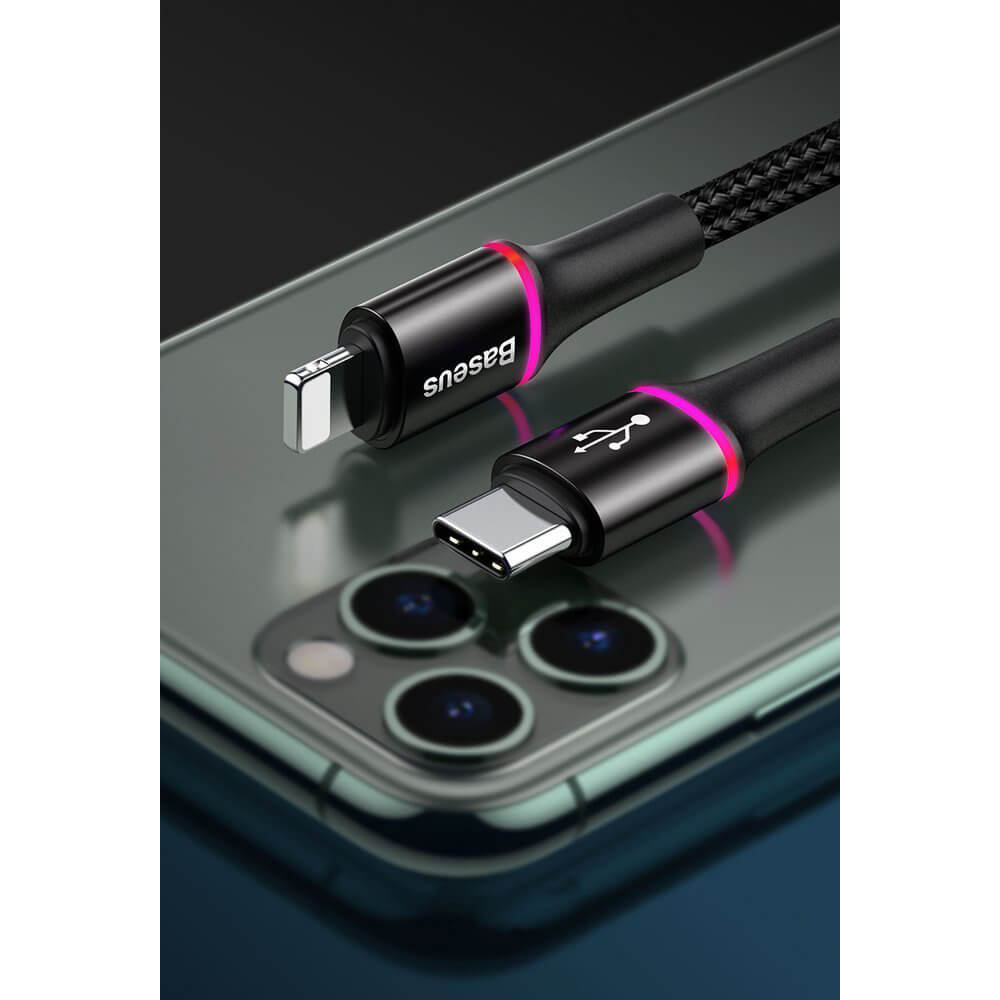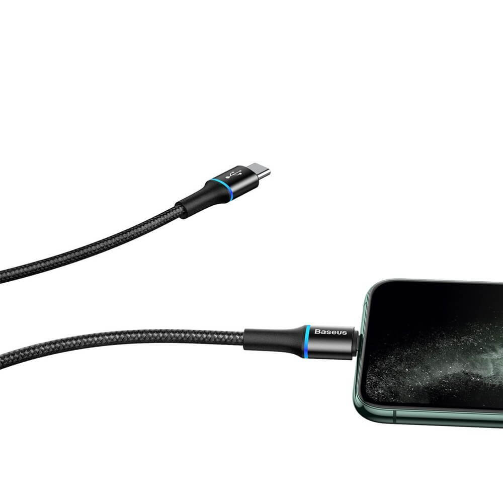 USB-C към Lightning кабел за Apple устройства с Lightning порт (100 см) - Baseus Halo USB-C to Lightning Cable (CATLGH-01) (черен)