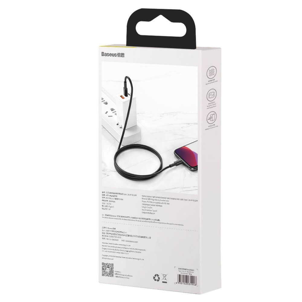 - В комплекта: 1 х Baseus High Density Braided USB-C to Lightning Cable PD 20W