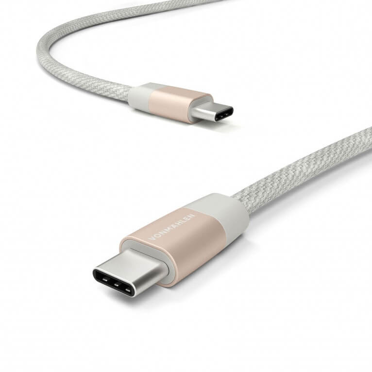 USB-C към USB-C 2.0 плетен кабел за устройства с USB-C порт (100 см) - Vonmahlen Premium Cable USB-C to USB-C (розово злато)