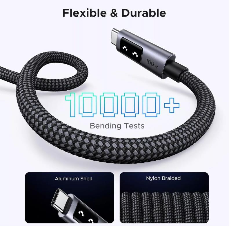 Надеждност, която трае години наред. Ugreen Uno е кабел, проектиран за дълготрайност. Алуминиевият корпус, двуслойният оплетен найлон и технологията за лазерно заваряване правят кабела устойчив на механични повреди. Той е преминал над 10 000 теста за огъване и 20 000 теста за включване и изключване без признаци на износване, осигурявайки надеждна работа в продължение на години.