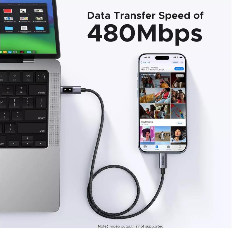 Кабелът поддържа скорости на пренос на данни до 480 Mbps, което означава, че можете да синхронизирате файлове от 1 GB за по-малко от половин минута. Това прави Ugreen Uno перфектен за всеки, който цени времето си.