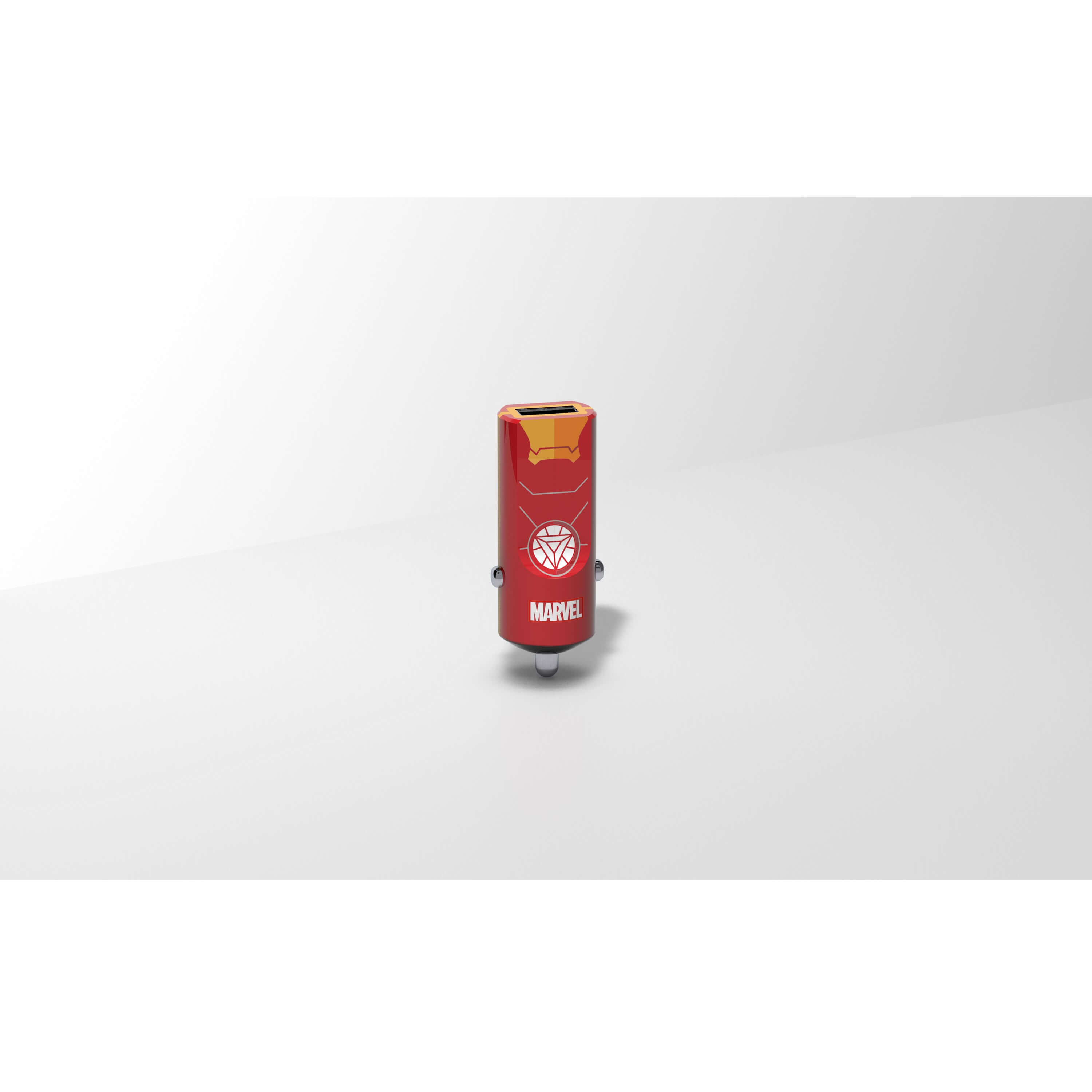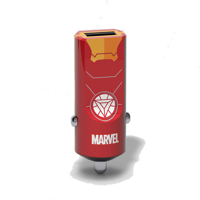 - Зарядните устройства за кола на Tribe имат малък размер и голяма индивидуалност. Този модел с гланцово покритие е вдъхновен от Iron Man