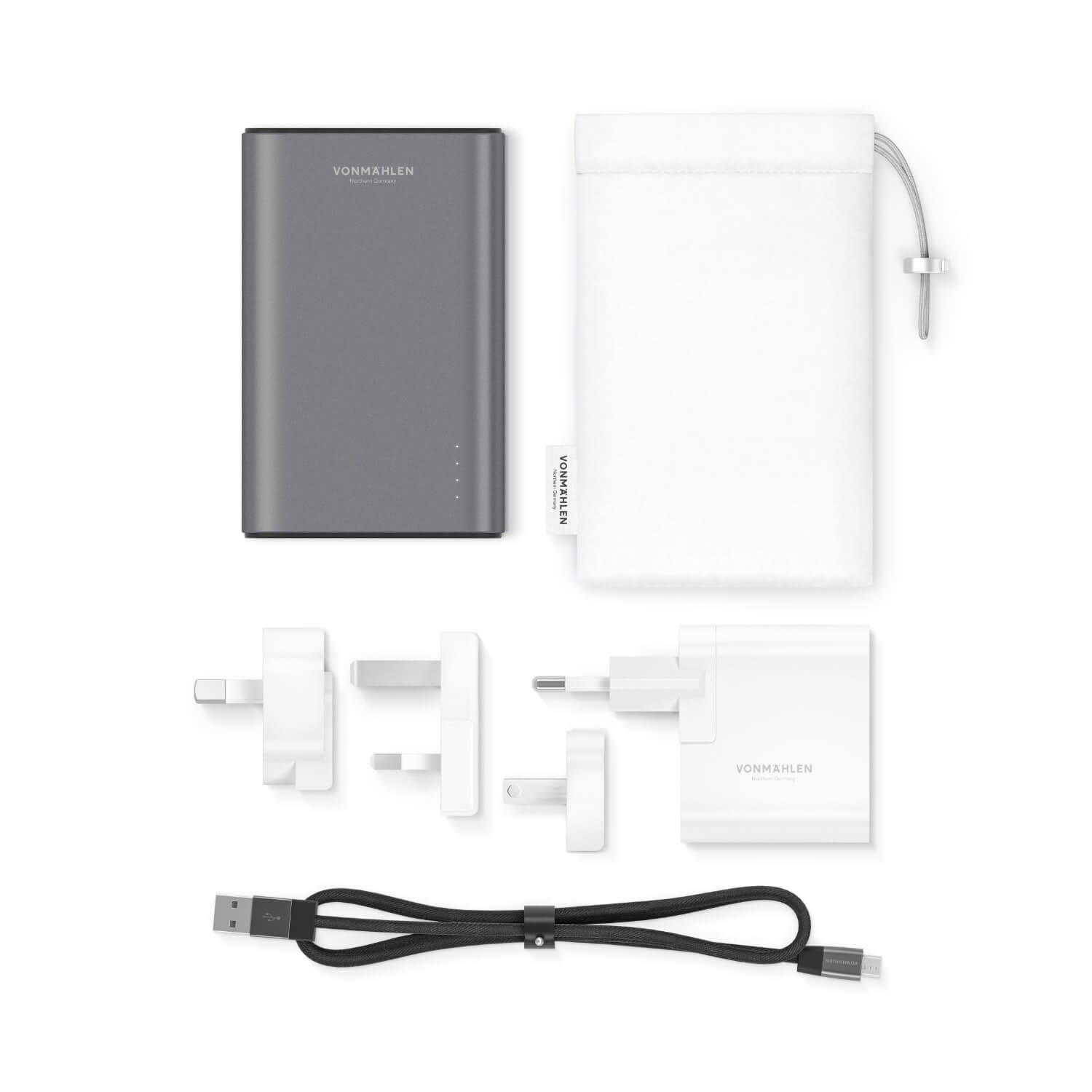 Vonmahlen Evergreen QC 3.0 Power Bank 10000 mAh - външна батерия с два USB изхода и USB-C порт и технология за бързо зареждане (тъмносив)
