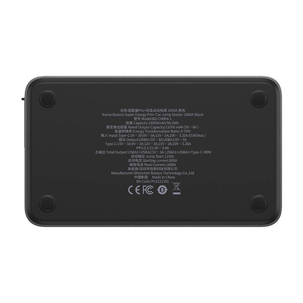 Външна батерия 16000 mAh с фенер и JumpStarter за автомобил - Baseus Super Energy Pro Plus Car Jump Starter 16000 mAh (CGNL070001) (черен)