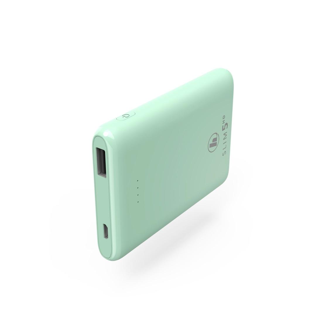 Външна батерия HAMA SLIM 5HD, 5000 mAh, LiPolym, USB-A, Зелен